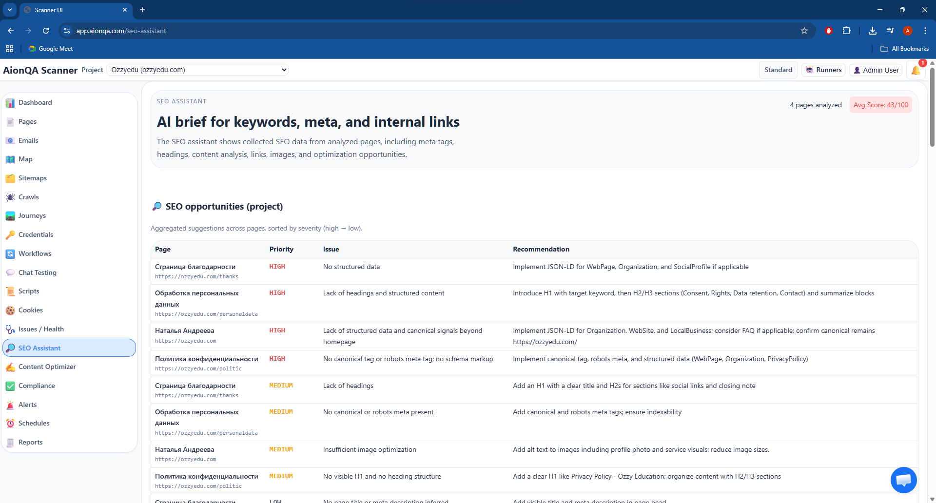 Quality is more than “no bugs.” Discoverability, clarity, and structure influence user experience and business outcomes. The SEO assistant makes those issues visible in a consistent way.